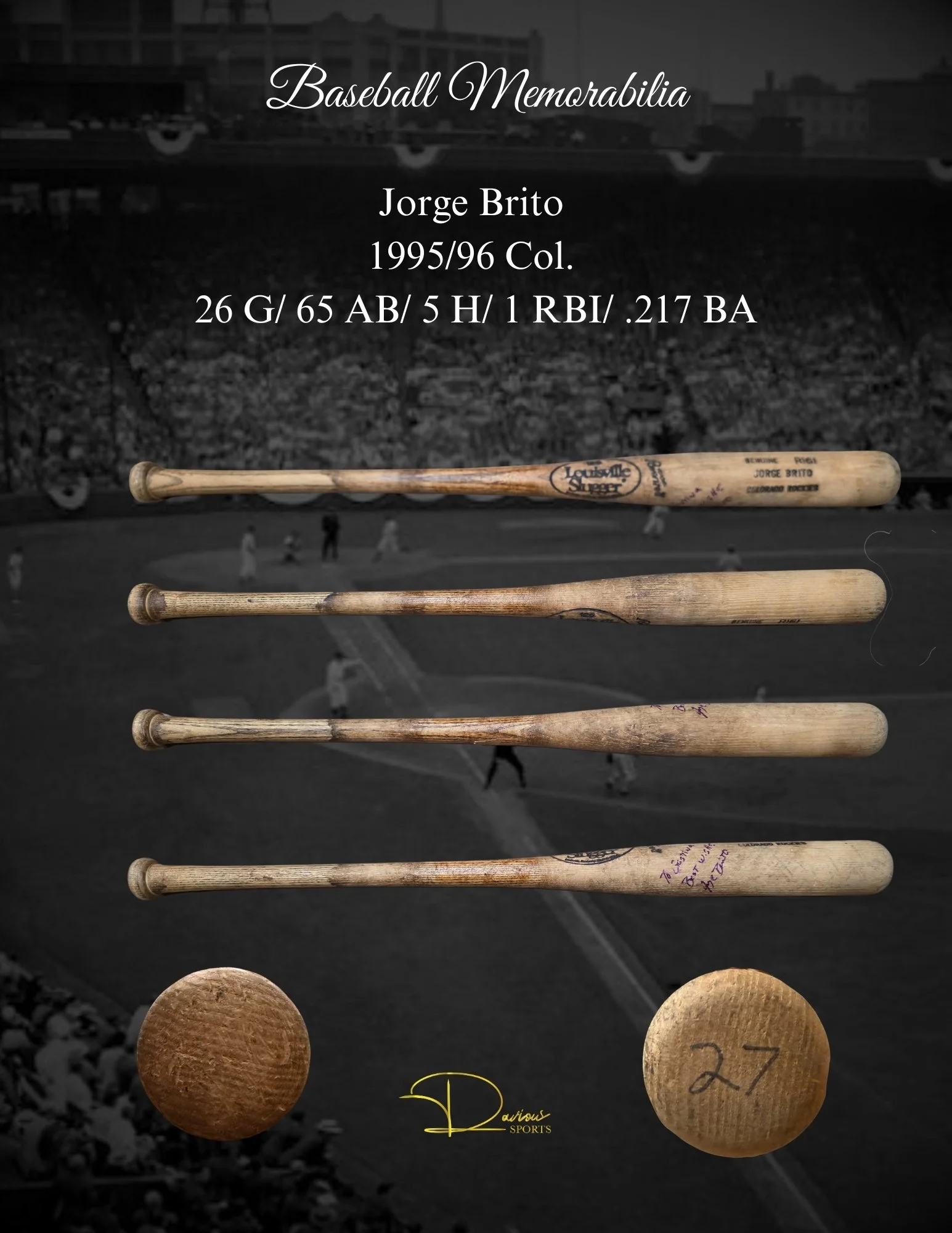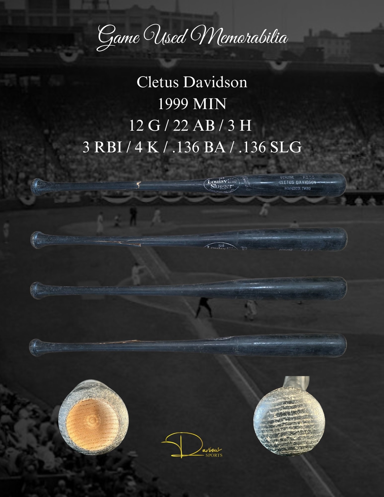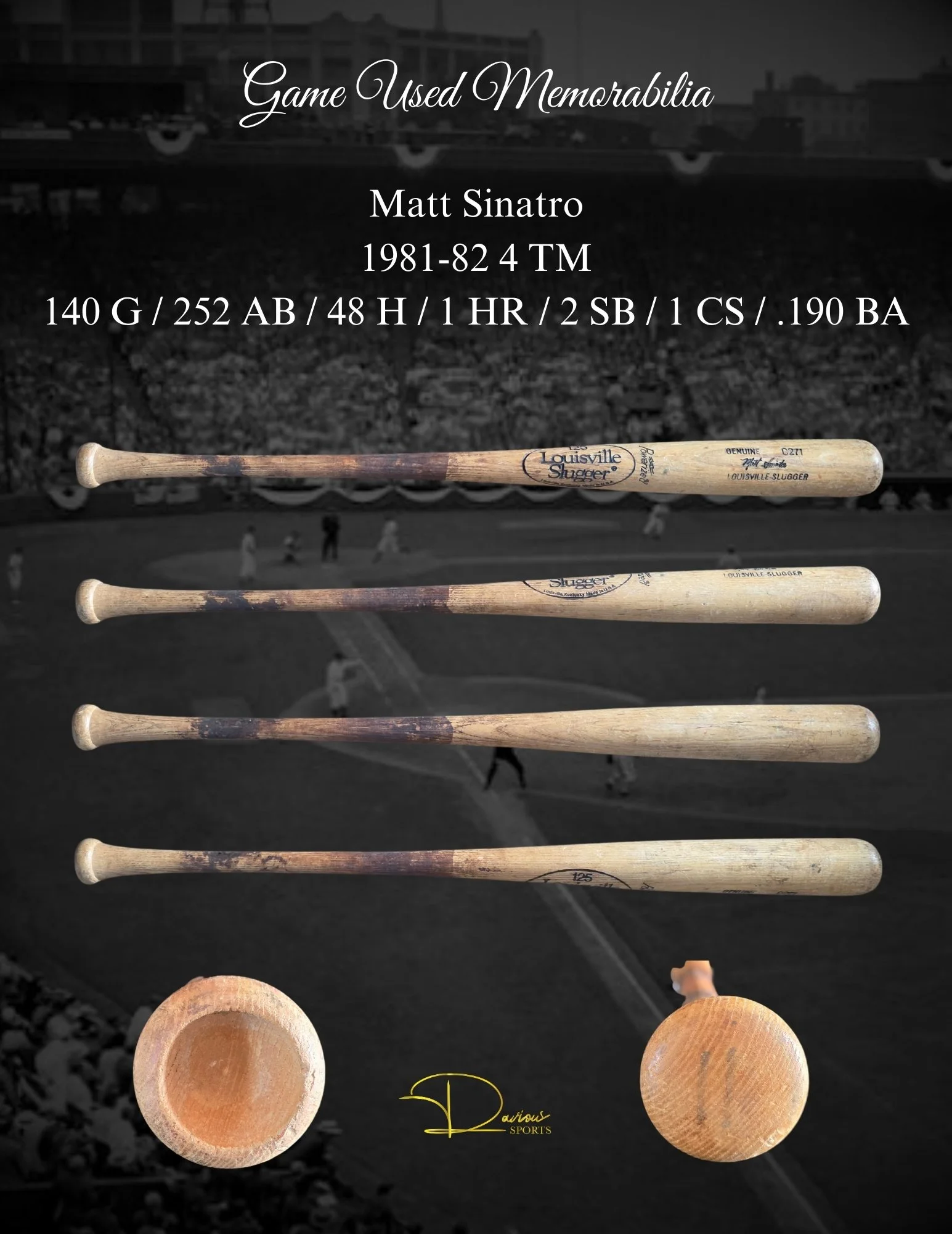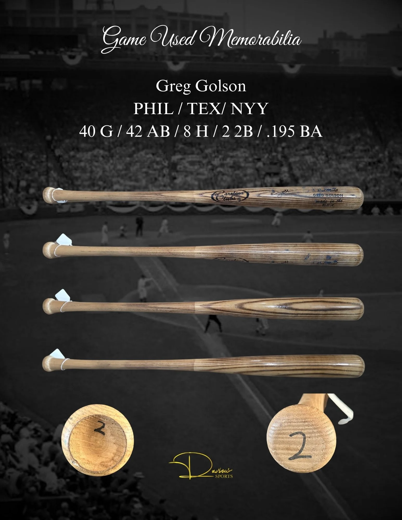 Misc Bats Fred "Smokey" Andrews Louis Basabe Brian Bocock Len Boehmer T.J. Bohn Bob Brenley Bob Brenly Chuck Brinkman Jorge Brito Oscar Brown Jamil Bubela Jeff Burroughs Mike Buskey Nick Buss Owen Caissie Robinson Cano Vinnie Castilla Jason Coats Dave Concepcion Fausto Cruz Fausto Cruz Arquimedes Cumana Hagen Danner Cletus Davidson Cletus Davidson Travis Sentell "Gookie" Dawkins Kory DeHaan Mark Dejohn Mark DeJohn Juan Diaz Juan Diaz Nick Dini Chris Dominguez John Ellis Paul Faries Darren Ford Jeff Frazier Isaac Galloway B.J. Garbe Rod Gardenhire Gil Garido Ralph Garr Webster Garrison Webster Garrison Mike Gates Derrick Gibson Joe Ginsburg Greg Golson Greg Golson Tuffy Gosewisch Shawn Green Zack Green Brian Horwitz Cedric Hunter Rob Johnson Gabe Kapler Terry Kennedy Joe Keough Ian Kinsler Frank Kostro Andrew Lambo Tyler Landendorf Jalal Leach Greg Legg Mike Lieberthal Ken Macha Jerry Manuel Marty Martinez Wyatt Mathisen Joe MCabe Bake McBride Brian McCann Scott McClain Kevin Melillo Ian Miller Don Money Hal Morris Carl Morton Danny Muno Denny Neagle Junior Noboa Nelson Norman Brian O'keefe Joe Odom Jorge Ona Claude Osteen Amos Otis Jordan Patterson Rico Petrocelli Vada Pinson Dalton Pompey Alex Prieto Milt Ramirez Anthony Rendon Rene Reyes Don Reynolds Carlos Rivero Nate Rolison Niuman Romero Pat Rooney Larry See Dick Sharon Matt Sinatro Blake Smith Van Snider Jim Tatum Gary Templeton Tim Toman Tony Torcato Carlos Triunfel Carlos Triunfel Justin Upton Jim Vatcher Luis Ugueto Kyle Waldrop Forrest Wall Zach Walters Rico Washington Bob Watson Frank White Bernie Williams Lance Zawadzki